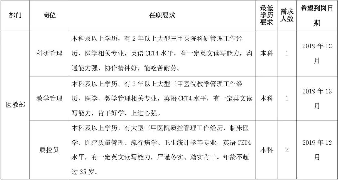 擁護黨的路線、方針、政策;遵守國家法律、法規(guī);熱愛本職工作,責任心強,有良好的職業(yè)道德,認同國際醫(yī)學(xué)價值理念,愿意投身醫(yī)療事業(yè);所學(xué)專業(yè)必須與應(yīng)聘崗位要求相符或必須具有相關(guān)從業(yè)經(jīng)歷。