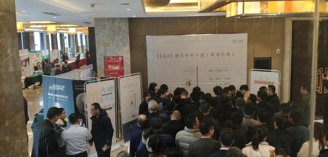 會(huì)上,AME汪道遠(yuǎn)社長(zhǎng)、高國(guó)棟教授、賀世明教授為活動(dòng)揭幕。隨后還舉行了《ERAS神經(jīng)外科手冊(cè)》簽贈(zèng)活動(dòng)。此書是我國(guó)首本將ERAS運(yùn)用于神經(jīng)外科后編著出來(lái)的手冊(cè),在場(chǎng)的同仁期望頗高?;顒?dòng)一開始,大家排起了長(zhǎng)隊(duì),希望獲得各位專家的親筆簽名。在現(xiàn)場(chǎng),大家就書中熱點(diǎn)展開討論。