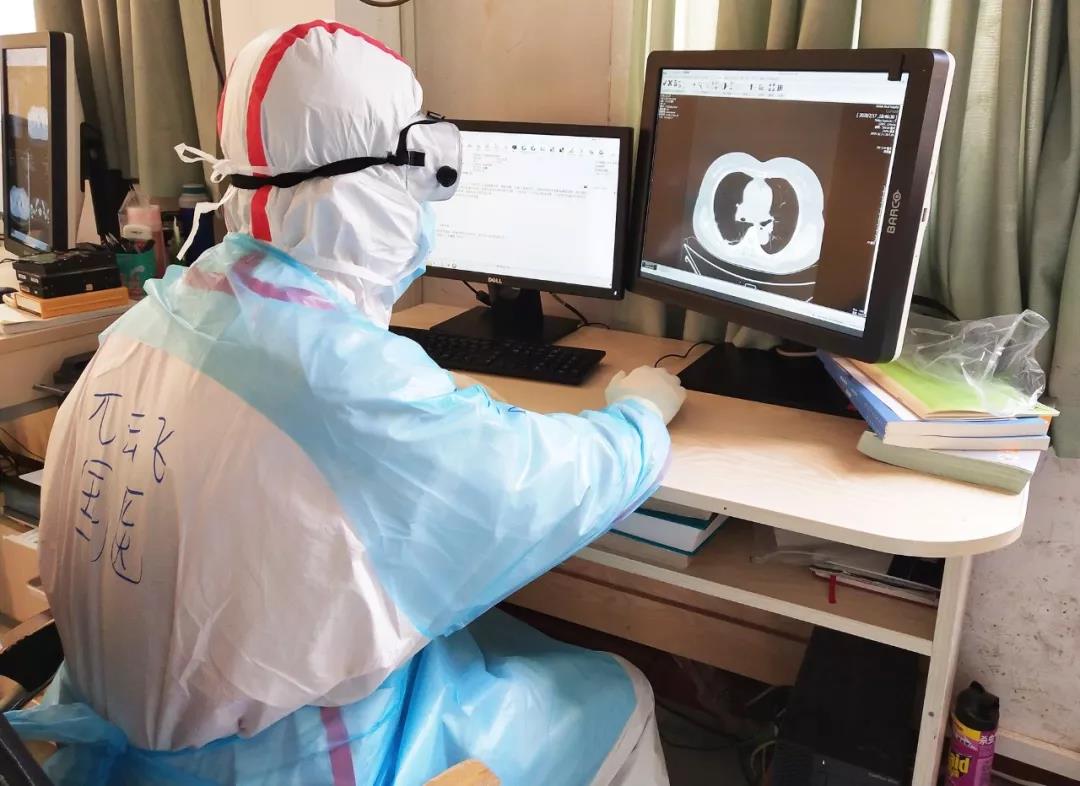 一個班次工作結束,兀云飛脫下防護服已是大汗淋漓?!皠倎淼臅r候,穿著防護裝備看片速度有些慢,不過經(jīng)過一段時間適應后快多了,我多看一個片子,就有一個人多一份希望?!必T骑w說。