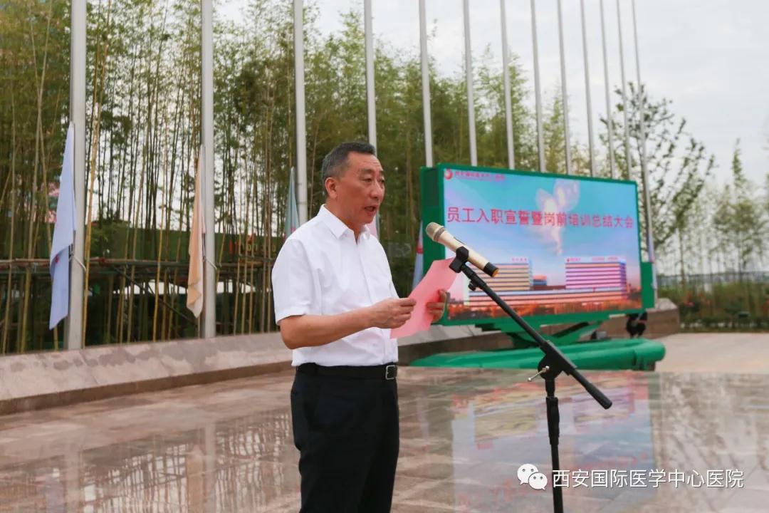 8月3日,西安國際醫(yī)學(xué)中心醫(yī)院舉行新員工入職宣誓暨崗前培訓(xùn)總結(jié)儀式。尹強院長、王志峰總經(jīng)理、楊峰副院長、李武平副院長、張斌副院長、財務(wù)總監(jiān)王亞星等領(lǐng)導(dǎo)出席,232名新入職員工參加。入職儀式由楊峰副院長主持。