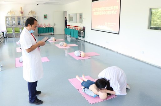 考核現(xiàn)場(chǎng)采用OSCE考站系統(tǒng),考生進(jìn)入考場(chǎng)后確定考核項(xiàng)目,在模擬人上進(jìn)行具體操作,考官根據(jù)學(xué)員操作與現(xiàn)場(chǎng)作答情況進(jìn)行評(píng)分,整個(gè)考場(chǎng)井然有序。此次考核不僅檢驗(yàn)了輪轉(zhuǎn)實(shí)習(xí)學(xué)員的學(xué)習(xí)效果,也達(dá)到了以考促學(xué)、以考促教的效果,促進(jìn)臨床帶教水平和質(zhì)量不斷提升。