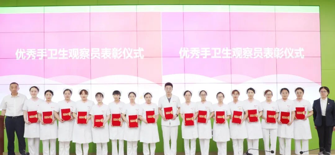 尹強(qiáng)院長(zhǎng)、李武平副院長(zhǎng)分別為17名優(yōu)秀手衛(wèi)生觀察員頒獎(jiǎng),并鼓勵(lì)大家在今后的工作中,繼續(xù)將院感防控理念與實(shí)際操作有機(jī)結(jié)合起來(lái),助推醫(yī)院各項(xiàng)工作順利開(kāi)展。