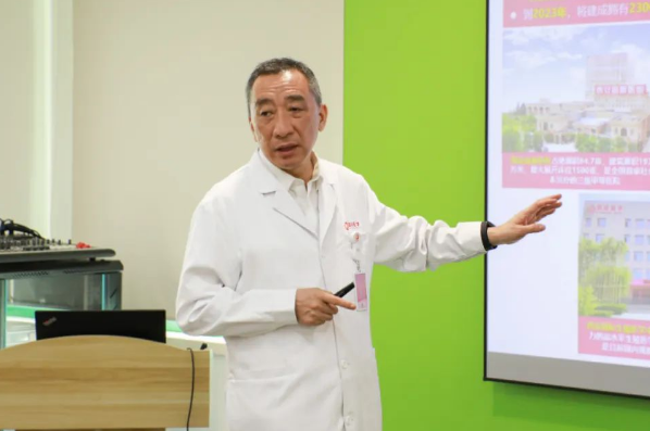 西安國際醫(yī)學(xué)中心醫(yī)院尹強院長代表醫(yī)院,對嘉賓們表示誠摯的歡迎,并從醫(yī)院概況、建設(shè)歷程、組織架構(gòu)、人才隊伍、制度體系、科教設(shè)施等19個方面詳細介紹了西安國際醫(yī)學(xué)中心醫(yī)院的情況。