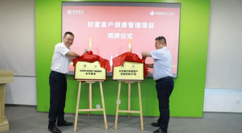 劉瑞軒總裁與王作全行長共同為“長安銀行財富客戶健康管理合作基地”“長安銀行財富客戶健康管理VIP室”揭牌。