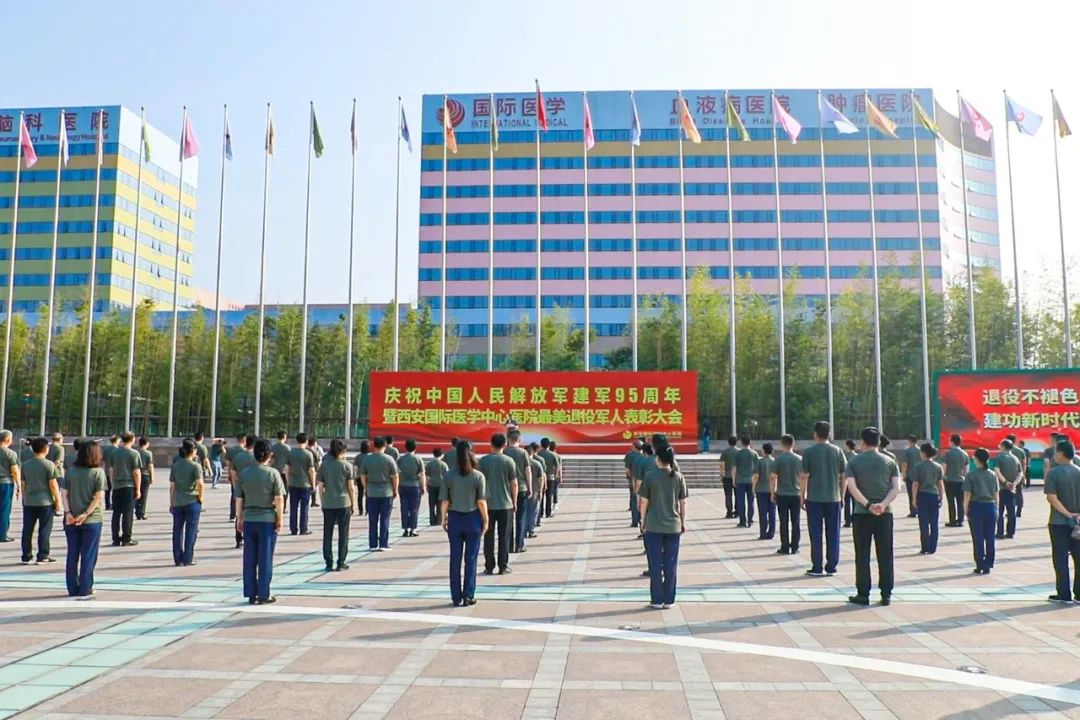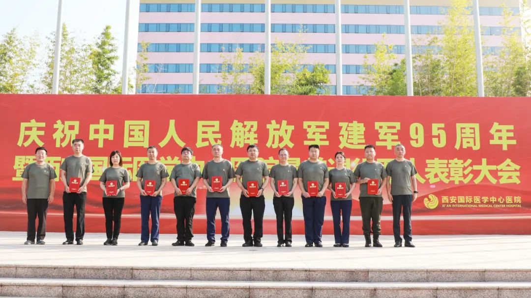 為慶祝中國人民解放軍建軍95周年,繼承和發(fā)揚(yáng)革命軍人的光榮傳統(tǒng)和優(yōu)良作風(fēng),西安國際醫(yī)學(xué)中心醫(yī)院舉辦了系列活動,包括“最美退役軍人表彰會”、“我是退役軍人,我在崗”、“送醫(yī)送藥送健康”義診等,動員和激勵(lì)廣大退役軍人不忘初心、奮發(fā)有為,投身醫(yī)院發(fā)展建設(shè),建功新時(shí)代。西安國際醫(yī)學(xué)中心醫(yī)院有部隊(duì)工作經(jīng)歷的2100余人,其中,曾在部隊(duì)醫(yī)院工作過的1900余人,高職人員占20.5%,碩士以上學(xué)歷人員占66.7%,碩、博士生導(dǎo)師占24.9%。醫(yī)院退役軍人近200人,今天,這個(gè)表彰會就是為了表彰他們中的杰出代表。