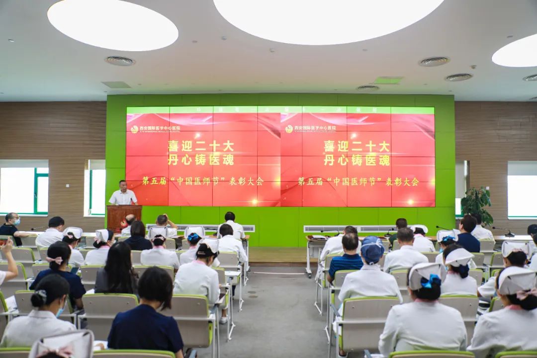 為進一步加強醫(yī)師隊伍建設,不斷激發(fā)我院醫(yī)師職業(yè)榮譽感、神圣感、使命感,在中國醫(yī)師節(jié)到來之際,西安國際醫(yī)學中心醫(yī)院舉行“喜迎二十大 丹心鑄醫(yī)魂”第五屆中國醫(yī)師節(jié)表彰大會。院長尹強、總經(jīng)理王志峰、財務總監(jiān)王亞星、副院長李武平、楊峰、張斌、劉延彤、付強以及醫(yī)生代表參加。