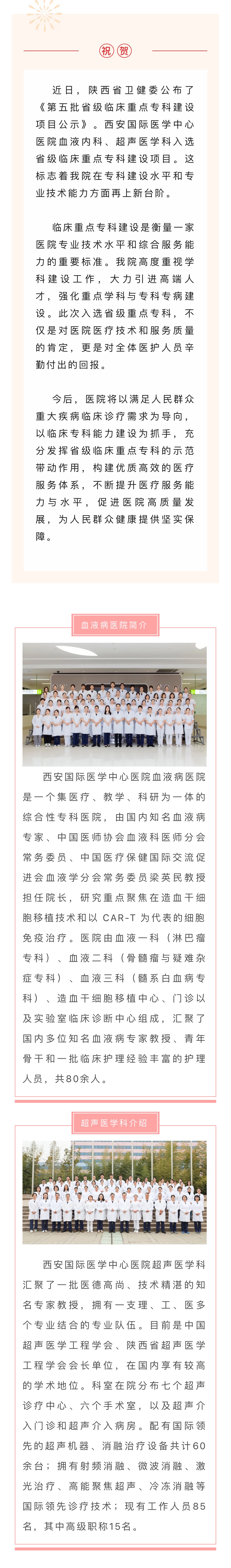 我院血液內科、超聲醫(yī)學科入選省級臨床重點??平ㄔO項目
