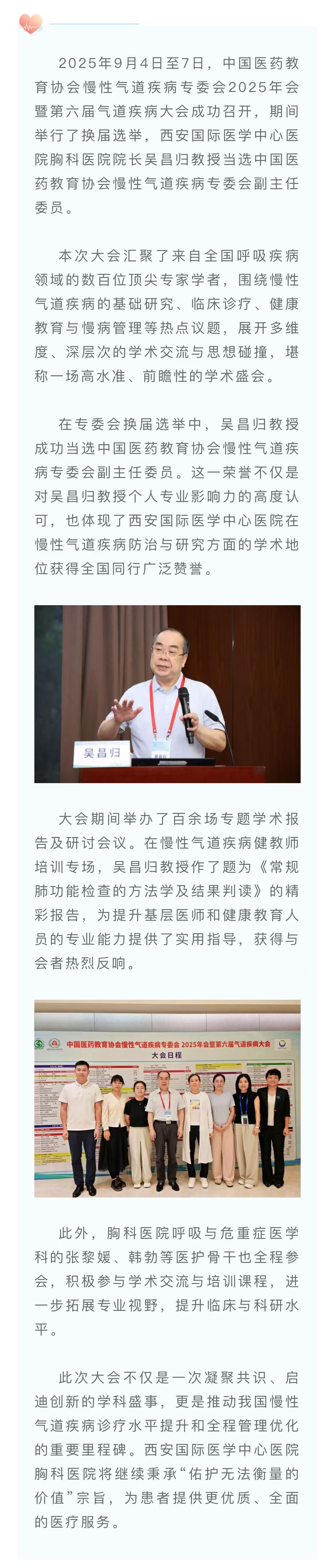 吳昌歸教授當(dāng)選中國(guó)醫(yī)藥教育協(xié)會(huì)慢性氣道疾病專委會(huì)副主委