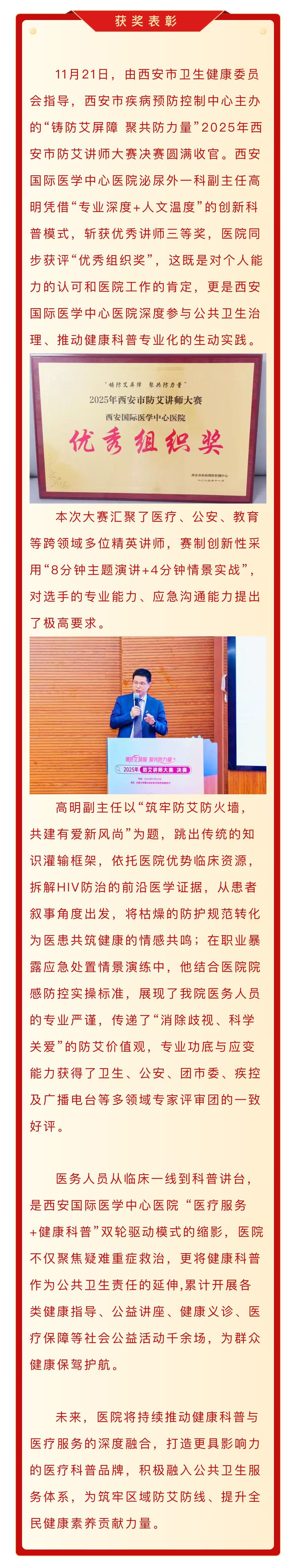 捷報頻傳——我院獲2025年西安市防艾講師大賽決賽個人、集體獎項