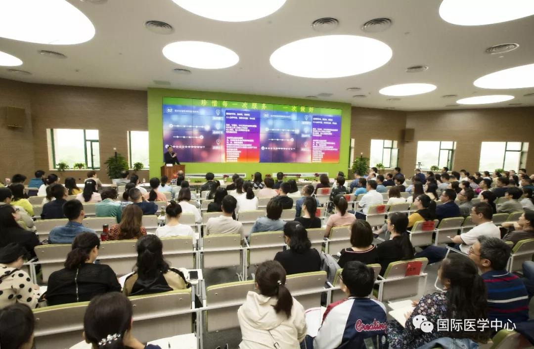 據(jù)統(tǒng)計,國際醫(yī)學(xué)中心領(lǐng)導(dǎo)、機關(guān)、各??漆t(yī)院、科室共計2000余人參加,直接受眾46000人次。14個培訓(xùn)會場內(nèi)座無虛席。主會場內(nèi),每位員工認(rèn)真做筆記,有的用錄音筆保存重要章節(jié),有的用手機拍下演示文檔圖片。分會場里,每場專題講座都進(jìn)行實況轉(zhuǎn)播。